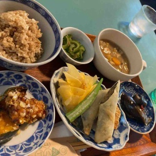 2025年8月23日岡寺✨今日は参拝なしです。治田神社へやってきました。岡寺のすぐ近く。狛犬さん。阿蔵。吽蔵。ありがとうございました🙏✨治田神社、詳しくはコチラ💁♀️ ↓ 今日はコチラがメインです。岡寺に参拝するたびに訪問したかったのですがいつも満席🈵今日は予約してやってきました。ココロゴハン✨古民家を再利用してはります。店内はアンティークショップも兼ねていてとても可愛いです。今日はココロゴハンを頂きます🙏メニューには色んな美味しそうなスイーツが盛りだくさん✨また機会があれば頂きたい☺️めちゃくちゃ雰囲気良きです✨キタキタ〜☺️美味しそう✨でもって、体に良さそう✨明日香村、東さんの玄米🍚とにかく、今まで食べた玄米の中で一番最高に美味しかった✨甘味があって、モチモチ✨お聞きしたところ、ガス用の圧力釜を使用してはるそうです。やっぱり、ガス焚きが美味しいですよね〜😋豚汁🐽ホッとする味✨ゴーヤのだし和え✨薄味でシャキシャキ✨かぼちゃのロースト和え🎃ほくほく😚じゃがいもの春巻き🥔パリパリ✨車麩のフライ✨鶏の唐揚げみたいでしたよ🍗ナスの田舎煮🍆沁みる〜✨ドライフラワーもセンスあり✨控えめで可愛いです🩷セットドリンクはアイスコーヒーにしました。郡山のK-COFFEEさんの豆🫘香りが良くて美味しい✨センスの良い本もたくさん置いてありゆっくり出来ます✨美味しかった〜✨ごちそうさまでした🙏✨本の挿し絵をパチリ🤳させて頂きました📖タヌ吉くんがコピーしてくれてくるりんの塗り絵にしてくれました🖍️どうかな⁉️塗り絵って、気分転換に良きです☺️今日も見て頂きありがとうございます🙏また見に来て下さいね☺️
