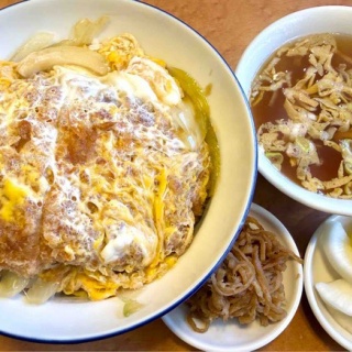 葛飾区四つ木ご存知キャプテン翼の故郷駅から北へ少し歩き中華「洋貴苑」さんでランチを元気良い主人とお母さんらしきお二人で営業中お目当てはカツ丼1100円也10分程待って登場では全国3000万人、カツ丼ファンの皆様声を揃えて参りましょう、「オープン・ザ・・・ ・・・ふた~っ(^o^)!」おおっ、こんもり美しき小宇宙🌏全体図お濃厚な切り干し大根煮自家製らしき糠漬け・スープ揚げたてロースカツは適度な厚み衣は甘目の丼タレを良く吸い込む「出前適性が高そうな衣」にて中華屋カツ丼らしき一杯。中華スープも得した気分で好き隣テーブルの女性が「焼豚美味しっ!」と声を上げていたので次回頼んでみようっと、四つ木の満足カツ丼ご馳走様でした