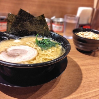 訪問日:2026.1.1 メニュー: ラーメン(大和家の日\550) テリヤキチャマヨ丼セット(\360) 味: 豚骨醤油 コメント: 今日紹介するのは、小作駅東口から少しの所にある「大和家」。 1月1日21:20頃の入店で店内1人待ち。 番号札を取り、食券を買ってから暫し店内のウェイティングシートで待ちます。 少しリニューアルしたのかな?看板が新しくなり、調味料も卓上に全て置かれるように戻りましたね! 券売機は2機用意されているうちの1機はキャッシュレス決済専用となっています。 メニューは、「ラーメン」「塩ラーメン」「味噌ラーメン」「辛味噌ラーメン」「あっさり中華そば」「醤油つけ麺」「味噌つけ麺」「うま辛味噌つけ麺」「濃厚魚介つけ麺極」、「お子様ラーメン」に各種トッピング、ご飯物、「からあげ」「肉汁餃子」、ドリンク類等。 冬季限定で「生姜味噌ラーメン」も提供されていました。 今回は、「ラーメン」と「テリヤキチャマヨ丼セット」をチョイス。 「麺の固さ」「味の濃さ」「油の量」など好みの調整が出来、食券を渡す際に聞いてくれるので、今回は「麺やわらかめ」「油多め」でお願いしました。 殆ど待たずに席に着く事が出来、程なくしてラーメンが出て来たので、早速いただきます。 予想以上に早い提供でちょっとビックリ! 「」大和家の日550円 白濁したスープは、豚骨などの動物系白湯スープをベースにした醤油味。 まったりとしたクリーミーさでクセが無くシチューを思わすようなポッテリしたもので「ザ・豚骨」っていう感じでは無いけれどクリーミーな濃厚感を楽しめ、いつもと比べると些か醤油感が強めでやや荒い印象でビッとした感じになって美味しい♪ 麺は、平打ち風の中太とストレート。 「柔らかめ」でお願いしたけれどいつもよりやや硬めな印象で、少しプツンとした感じの歯切れの良さを感じる食感。 やっぱりちょっと硬いかなっていう印象ではあるけど、「大和家の日」って言うサービスデーで元日で他のお店がやってないという忙しいタイミングなので、そんな中早い提供をしてくれてるので問題は無いかなと。 トッピングは、チャーシュー、ほうれん草、ウズラの茹で玉子、海苔。 チャーシューは、適度な厚みと大きさのバラロール。 トロっと柔らかく煮込まれていて旨味もあって美味しい♪ ウズラの茹で玉子は、プチンと口の中で弾けて黄身が少し溶け出すような半熟感で美味しい。 途中で、卓上のニンニクと粗挽き唐辛子を加えると、パンチのある風味と旨味とピリッとした辛味のアクセントが加味されて美味しい♪ 「テリヤキチャマヨ」360円 「テリヤキチャマヨ丼」は、ご飯の上にボイルしたキャベツが敷かれ、刻みチャーシューがたっぷりのり、マヨネーズをかけたもの。 細かく刻まれたチャーシューはバーナーで炙って焦げ目がついていて、ちょっと甘味を感じるタレがキツ過ぎない程度にかかっていて、マヨネーズと照り焼きチャーシューの旨味と甘味とかが合わさって、間違いな味わいで凄く美味しい♪ 勿論、スープを吸わせた海苔で巻いて食べても美味しい♪ 全体的な印象としては、まったりとしたクリーミーな大和家らしい味わいの豚骨醤油と旨味たっぷりなテリヤキチャマヨ丼で、どちらも美味しかった♪ ご馳走様でした♪ 2026何杯目?: 3杯目 前回の訪問: 2025.11.24 禁煙状況: 禁煙 所在: 東京都羽村市小作台1-22-5 営業時間: 11:00~翌2:00 定休日: 無 電話: 042-533-6533 駐車場: 15台 公式HP: 大和家