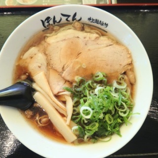 今回のお店は「くめちゃん」です。 内観や駐車場など 店内はカウンター席のみで禁煙。厨房前に6席とその背面に11席。駐車場はありません。 メニュー ご飯ものメニューも始めたんですね。トッピングメニュー表も新しくなっています。今回はしょうゆラーメン 小+豚入り+魚粉(1200円+200円+50円税込)を注文しました。豚入りはトッピング表じゃなくてアブラ麺の下に記載されています。コールはアブラ少なめにしました。 しょうゆラーメン 小 アブラ少なめ+豚入り+魚粉 大迫力マウンテン!豚入りでデフォの2枚に+3枚で計5枚!それぞれ厚みが2cm以上はあるので豚ロールがそのまま入っているのではと思えるほどのボリューム。豚入り+野菜マシにすると量が半端ではないのでどちらか片方のみにした方がいいです。 レビュー いつものように野菜の山を崩していきます。今日は珍しくキャベツが多いな。カラメにしなくてもモヤシが旨いっ!シャキシャキでも水っぽさはなくスープを邪魔しません。 スープもうんめぇ〜〜〜っ!豚骨の旨味を際立たせるように芳醇な醤油ダレがキリッと効いています。丸みのある穏やかな味の醤油ダレなのに奥深い味わい。豚骨と醤油ダレが完璧に調和しています。 麺は極太ストレート。力強いコシと靭性の高い弾力。小麦がギュッと圧縮された少し硬めの歯応えで噛むほど旨さが感じられます。ブルンとしなるようにすすれ、気持ちのいい食べ応えです。 豚イズゴッド!今年食べた豚の中で一番美味しいかもしれない。この厚みでホロホロと崩れる柔らかなツナ豚。脂身も口内で溶けます。醤油ダレの染み方も濃すぎず絶妙で圧倒的な美味しさです! まとめ 正直、値段は去年と今年で一気に上がった印象。値段が上がれば相対的に満足度は下がるものですが、この豚は現在の値段でも食べる価値が大いにあります。すごく美味しかったです。 ごちそうさまでした。 店舗情報