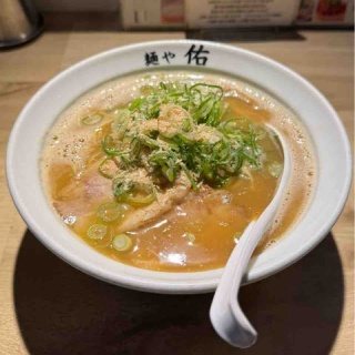 訪れたのは12時半頃、店内や店外合わせて10人程の待ちが出来ていましたが回転が早くそれほど待たずに入店する事が出来ました。順番となり案内していただいたカウンター席へ、事前に購入しておいた「鶏×魚×豚」(980円)の食券をスタッフさんに渡し着麺を待ちます。どんぶりには、チャーシュー、メンマ、刻みネギ、その上から鮪節がふりかけられスープは白濁しています。スープは4種類の煮干、鰹荒本節、貝柱など使った魚介出汁に鶏がらや豚を使った動物系を合わせた白湯、醤油の絶妙な塩味と微かな酸味がスープの味を引き立て濃厚でまろやかなコクが感じられます。麺は硬めに茹でられパッとした歯切れの良い自家製な加水低めな中細ストレート麺が合わされ小麦の風味も豊かでスープも馴染みます。シャキシャキとした刻みネギもスープと良く合い、豚チャーシューは柔らかく肉の旨みと濃厚な脂の甘みとコクが味わえ美味しくいただきました。【店名】 麺や佑【場所】大阪府大阪市中央区南久宝寺町4-5-15 ニューライフ御堂筋本町大阪メトロ 本町駅から徒歩5分駐車場無【営業時間】日、月、火、水、木、金、土10:00〜15:00月、火、水、木、金、土17:00〜21:30日曜日17:00〜21:00表示価格、メニュー、営業時間、定休日等は訪れた当時の情報の為、店舗公式情報をご確認ください。