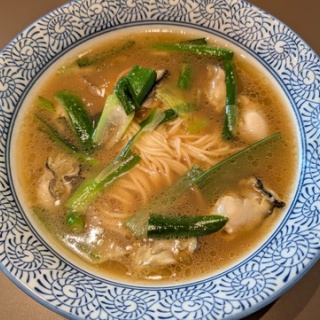 【2026年21杯目】今日はお客様とのランチミーティングだったので、赤坂の「トゥーランドット 臥龍居」に予約して訪問した。料理人の脇屋友詞さんのお店である。https://www.wakiya.co.jp/restaurants/akasaka/店内に入るとピアノがあり、お洒落な雰囲気。席も広々としている。夜のディナーコースは15,000円からで、15万円というラインナップもある。人生で一度はディナーに行ってみたいところであるが、ランチは1,600円~。いつもは「昔ながらの醤油ラーメン」にしているが、今回は季節限定の、、、旬の旨み!カキつゆそばを注文(2,600円)。これまで生涯で食べてきた麺類の中ではトップクラスの価格。この麺に点心が2個付いてくる。そして、海老チャーハン(2,000円)をシェア用に頼んで、デザートに杏仁豆腐もお願いした。お冷は緑茶で、無くなりそうになるとスグに店員さんが注ぎに来てくれる。10分ほどで先に点心が到着。小籠包は肉汁がたっぷり、エビ餃子は味が付いており、エビのプリプリとした食感が良かった。「カキつゆそば」が到着。スープから牡蠣の風味がして、飲んでみると、奥深い塩味ベースの清湯と牡蠣の旨味が溶け込んでおり、思わず唸るほどの旨さで感動した。麺は細タイプでスルスルと胃の中に入っていく。具は牡蠣とネギのみであるが、この牡蠣の火の入り加減が絶妙。咀嚼すると口の中にスープを纏った牡蠣の旨味が一気に広がっていく。6粒入っていたが、一粒一粒を大切に食べて行った。ネギも良いアクセントになっており、箸休め的な存在感を出していた。」海老チャーハン」は取り分けて提供された。この海老チャーハンも絶品の旨さ。調味料でXO醤が入っておりこれが秀逸。油とのバランスも良く止まらない。これは食べログを見ている方に是非おススメしたい。そして最後にデザートの「杏仁豆腐」は、甘すぎず口の中をサッパリとさせてくれた。味はもちろんの事、店内の雰囲気・接客など、どれも最高レベルのランチ。次回も必ず訪れたい……(゚д゚)激ウマー!!! トゥーランドット 臥龍居 (中華料理 / 赤坂駅、六本木駅、乃木坂駅) 昼総合点★★★★☆ 4.0