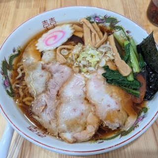 お店を訪れたのは12時半頃、店内は既に満席でお店の外で並んで待つ事に。5分程待ち入店、セットメニューも有りましたが単品で「中華そば 並」(1,000円)をいただく事に、案内していただいたカウンター席で着麺を待ちます。どんぶりには、チャーシュー、刻みネギが盛り付けられスープは醤油色に黒く染まっています。スープは鶏がらと豚骨を使った清湯、動物系のコクに旨みが強めに効かされ見た目程ではありませんが醤油の香ばしさと塩味も効いておりスープに厚みが感じられます。麺は近藤製麺の低加水中細ストレート麺、大釜でたっぷりのお湯を使い麺を泳がせながら茹でる事で麺全体にしっかりと熱が加わりもっちりとしたコシと小麦の旨みが感じられスープも良く馴染みます。チャーシューは厚めにスライスされた煮豚タイプの物が使われ赤身と脂身がバランス良く混在しておりしっかりと煮込まれいますが味抜けも無く美味しくいただきました。【店名】新福菜館 守口店【場所】大阪府守口市京阪本通1-2-12 大阪メトロ 太子橋今市駅から徒歩5分京阪 土居駅から徒歩5分駐車場有(提携駐車場の証明書持参でサービス有。)【営業時間】11:00〜20:00定休日 水曜日表示価格、メニュー、営業時間、定休日等は訪れた当時の情報の為、店舗公式情報をご確認ください。