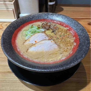 訪れたのは13時頃、店内は満席に近い状態でしたが丁度入れ替わりのタイミングで運良く席が空いており待つ事無く入店する事ができました。食券機で「豚豚ラーメン」(1,000円)の購入、スープは3種類から選択するスタイルで「すーぱーへびー」を選択、食券を案内していただいたカウンター席に座り着麺を待ちます。どんぶりには、チャーシュー、刻みネギ、キクラゲ、カラフルな胡麻が盛り付けられ茶濁したスープの中に背脂が見えます。スープは大腿骨、ロース骨を使った「らいと」をベースに更に豚足、ミンチを加え24時間追い焚きした豚骨白湯、濃厚なコクと仄かな香ばしさが感じられ背脂が更に厚みを与え醤油のキリッとした塩味と酸味がスープの味を引き立てます。麺は「紫牡丹」と「焔神」の2種類の小麦が使われた中太ストレート麺はモチっとしたコシがありしっかりとした小麦の風味もあり濃厚なスープが絡んでも麺の存在感が損なわれません。チャーシューは肉の旨みが活かされた豚バラ肉が使われ脂は少なめですが脂のコクと肉の風味の良さが楽しめ美味しくいただきました。【店名】麺房 豚くらふと【場所】大阪府吹田市垂水町3-35-25 江坂第一レジャービル大阪府メトロ 江坂駅から徒歩6分駐車場無【営業時間】11:00〜14:0017:00〜21:00表示価格、メニュー、営業時間、定休日等は訪れた当時の情報の為、店舗公式情報をご確認ください。