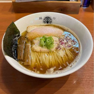 少し離れた駐車場にクルマを停めお店に到着したのは14時頃、店外に待ちが出来ていましたがそれほど待つ事なく入店する事が出来ました。「煮干らぁ麺」(1,300円)の食券をスタッフさんに渡し案内していただいたカウンター席に座り着麺を待ちます。どんぶりには、2種類のチャーシュー、メンマ、海苔、刻みネギが盛り付けられ麺線は綺麗に整えられています。スープは片口イワシ、鯵、真鰯、ムロアジなどの煮干しを使った魚介系清湯、煮干しの香ばしさにあっさりとしながらも濃密な旨みがあり鶏油が厚みを与えキリッとした塩味と仄かに香る柚子がスープの味を引き立てます。麺は表麺が滑らかで喉越しが良くしっかりとしたコシの強さもある自家製のストレート麺が使われ小麦の旨みもとても豊かでスープが馴染みます。豚ロースのチャーシューはしなやかなで風味がとても良く鶏むねチャーシューは厚みかありしっとりとしておりあっさりした旨みが楽しめ美味しくいただきました。【店名】らぁ麺 とうひち【場所】京都府京都市中京区中之町565-23 ハレの日 花遊小路 2F阪急 京都河原町駅から徒歩2分京阪 祇園四条駅から徒歩5分駐車場無【営業時間】11:30〜16:0018:00〜21:30不定休