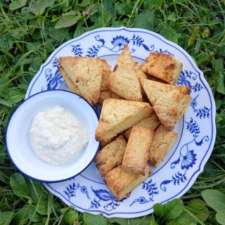 幻のフルーツ、ポポーまだまだ沢山採れてます 今日はポポー丸ごと練り込んでスコーンを作ります。焼いているときに幸せな香りが部屋中に広がります ボウル2つで手軽にできます♪ 材料 ○米粉 300g ○きび砂糖 50g ○ベーキングパウダー 8g ☆ポポー(完熟)大きめ2個 ☆卵 1個 ◇菜種油 67g 1.○の材料を大きめのボウルに入れ、ゴムべらで混ぜておく。 2.☆の材料を別のボウルでペースト状になるまで混ぜ合わせる。ポポーは完熟のものを用意し、種を取り除いて使います。 3.①に②を加える。ゴムべらで混ぜ合わせます。 4.馴染んだら菜種油を加えて、カードに持ち替え、層を作るイメージで生地を切っては重ねを5回ほど繰り返します。 5.このようにまとまったら成形します。今回私は三角と四角にしました。 6.200℃に予熱したオーブンで10分、180℃に下げて5分焼いて完成! 美味しそう〜ポポーの水分だけで生地をまとめたので濃厚な香りです。 今回私は豆乳で作ったクリームを付けて食べました。 クリームの作り方は豆乳400gを50℃に鍋で温めてレモン汁を大さじ2ほど加えて分離させ、コーヒーフィルターで1時間ほど水切りし、菜種油小さじ2、砂糖大さじ1、塩ひとつまみを加えて混ぜて冷やして完成です。 2つに割って付けて食べると絶品です。もちろんそのままでもポポーのフルーティーさがよく味わえて◎ ポポーの特有の香りが苦手な方もぜひ食べてみて欲しいです ポポーは幻のフルーツとも呼ばれています。しかし最近はネットなどでも気軽に買えますね〜 と言ってもこんなふうにしてお菓子に練り込むのは贅沢ですね。農家の特権かも ポポーをバナナに置き換えても美味しいです ありがとうございました。