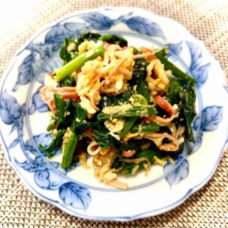 お弁当にぴったり!カニカマとほうれん草の卵炒め