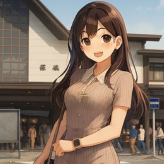 駅前の横断歩道近くでポーズを決める美少女を描いたアニメ風イラスト。タイトなワンピースと白い襟が印象的で、都会的な雰囲気と日常の一瞬をスタイリッシュに表現しています。 An anime-style illustration of a cute girl posing near a crosswalk in front of a train station. Her fitted dress and white collar highlight a stylish moment in an everyday urban setting.