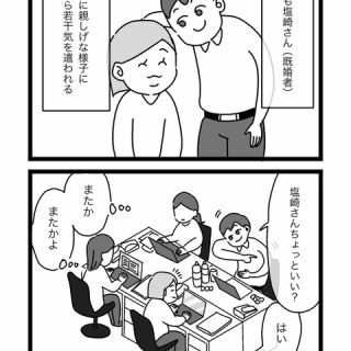 用事がありこの部署にお邪魔すると、皆さんが防犯カメラのモニター前に集まってざわついてることがよくありました不審者か…?と思って聞くと「いつもの二人よ〜」と言われ納得青岩さん(既婚者)と塩崎さん(既婚者)の「密会」でした※すごく下世話な話題に感じるかと思いますが、青岩さんは役職持ちだったので彼のハンコなしには急ぎのものであっても書類は一切進まない事態になり、嫌味でこのネーミングになってますそれだけ頻繁だったんだなあ…お相手のお気に入りの部下、塩崎さんはこれまた「サボれるならなんでもいい」と公言するタイプだったので当然青岩さんを止めるわけもなくこの日も二人は楽しげにカメラの死角にのんびりと消えていくのでした…青岩さんってどんな人?というお話はこちらから読めます!↓ にほんブログ村 にほんブログ村 にほんブログ村