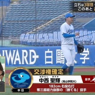 中日、中西聖輝の1本釣りに成功! 2年連続大学No.1投手を獲得!!!