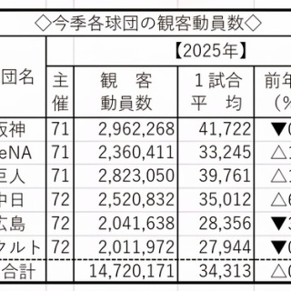 中日、観客増加数トップ