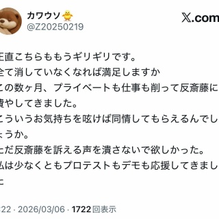 反斎藤活動家さん、泣く「仕事もプライベートも削って反斎藤やってきた、もう限界だ」