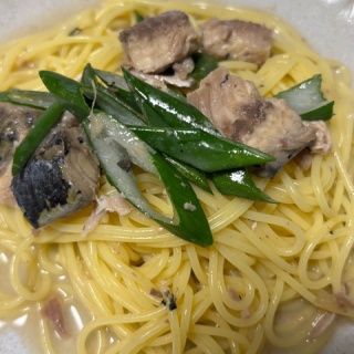 さば缶パスタ栄養素249キロカロリーたんぱく質 15.3脂質 5.1炭水化物 36.7材料いなばひと口さば缶半分パスタ50グラム塩2グラム〜季節の野菜(今回は長ネギ)水350ml作り方①フライパンに水を入れて強火(IH8)にかけて、沸いたらパスタとさば缶を入れ、蓋をしてパスタの規定時間茹でる。②ある程度水分が飛んだら火を止め、塩で味を整えて好みの野菜を加える。③お皿に盛り完成。翌日食べる場合は、冷蔵庫にラップをしてしまっておき、食べる時にラップをしたまま600Wで2分加熱。その後様子を見ながら30秒加熱。今回は計2分30秒で仕上がりました!サーモスに入れてお弁当にもオススメです♪次回に向けてのメモ今回は強火、後塩調理しましたが、次回は塩先、弱中火、水250mlで調理してみたいと思います!あと今回、唐辛子を入れ忘れたので、次回からは唐辛子を加えようと思います笑それと、摂取できるカロリーに余裕がある時は、ニンニクを入れても良さそうですね!皆様のダイエットの参考になりましたら幸いです♪