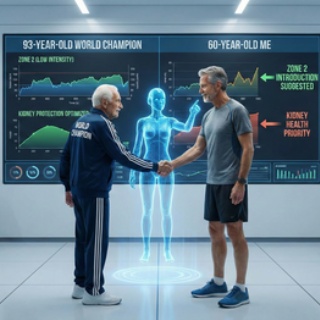 こんにちは。 「93歳のアスリート、体力は40代に匹敵」 そんな夢のようなニュースを見かけました。秘訣は一体何なのか?私の3人のAIコーチたちに分析させたところ、驚きの事実が判明しました。 彼のトレーニングの70%は、「会話ができるくらい楽な運動(Zone 2)」だったのです。私はこれまで、「バスケも筋トレも常に全力!」が正義だと思っていました。 しかし、AIコーチたちは口を揃えて言いました。 「今のままでは93歳まで持ちません。心臓と血管を守るために、もっと『手抜き(低強度)』の運動をしてください」そこでAIが作ってくれたのが、「ハイブリッド・シニア・アスリート・プロトコル」。 名前は仰々しいですが、要するに 「バスケの日は全力でいいけど、それ以外は散歩くらいにしておけ」 「プロテイン飲みすぎると腎臓壊すから、豆腐も食え」 という、非常に現実的なプランです(笑)。「頑張らない日」を作ることが、実は「最強の身体」を作る近道だった。 60歳からの挑戦は、「勇気ある手抜き」の習得から始まるのかもしれません。(※この「知的探求」の全記録は、本町BBCの公式サイトで公開しています。この「AI創世記」や「N-of-1研究」にご興味のある方は、ぜひ本拠地にもお越しください。)