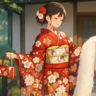 華やかな振袖姿の女の子を描いたアニメ風イラストです。赤い着物には繊細な花模様が施され、白いファーストールと和風の建物が背景に調和しています。日本の伝統美と春の優しい雰囲気を感じさせる一枚です。 An anime-style illustration of a girl in a vibrant red furisode kimono adorned with delicate floral patterns. She holds a white fur stole and stands in front of a traditional Japanese building. The artwork captures the elegance of Japanese tradition and the gentle mood of spring.