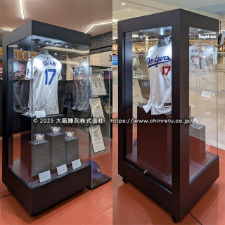 ナゴヤドーム横のイオンモール3階にございます野球専門店「BASEBALL FIELD to future」様からご依頼を頂いておりました「大谷翔平選手のサイン入りユニフォーム展示用ショーケース(トルソーケース/マネキンケース)」の納品を無事に完了致しました。(写真2枚目)ユニフォームが明るく見やすく「格好良く」展示出来るガラスケースになっておりまして、設置作業中も通行なさっている方々がしばしば近寄って来られて、ユニフォームやボールをご覧になっていらっしゃいました。サイン入りユニフォームだけで無く、サイン入りボールも一緒に観ることが出来る機会はなかなか無いと思いますので、是非お店に足を運んで頂きまして現物をご覧になってみて下さい!写真は仮展示の状態で、最終的には各種証明書と共に展示なさるそうです。手前のサインボール展示台3つは「表彰台」のイメージになっております。今回の様な展示物の場合は「黒」がやはり格好良いですね。なお、外寸は(およそ):W900×D750×H2,070mmです。この様なフルオーダーのショーケース/コレクションケースはお客様のご希望に合わせたサイズ/仕上げ/デザインにて製作する事が出来ます。 展示物が魅力的に見えるショーケース/コレクションケースのデザイン/製作は「大阪陳列株式会社」にお任せ下さい! ※現在、お商売でもご家庭でもお使い頂きやすいサイズのアルミ枠ガラスショーケースの「超お買い得展示処分品が多数」ございます。(詳しくは「展示現品処分セール」のページをご覧下さい。)※当ページは製品紹介等の「発信専用」とさせて頂いておりますので、製品や投稿に関するお問い合わせはお電話/FAX/お問い合わせフォームからお願い致します。~~~~~~~~~~~~~~~~当社ショールームでは、様々なタイプのショーケース/コレクションケースの数々を実際にご覧頂けます。数多くのショーケース/コレクションケースを実際に見て触れることの出来るショールームは全国でも珍しいです。当社のメインサイト(下記アドレス)には、フルオーダーやカスタマイズで製作致しましたショーケース/コレクションケースの製作販売実例を大量に掲載致しております。納品実績は常に少しずつサイトへ追加致しておりますので、過去にご覧頂きました方も新しい発見が有ると思います。是非ご覧になってみて下さい!「見せる」から「魅せる」に...ショーケース/コレクションケースの「超」専門店大阪陳列株式会社大阪府大阪市西成区橘2丁目5-31TEL 06-6651-1234FAX 06-6651-6651https://www.chinretu.co.jp/Facebookhttps://www.facebook.com/collectioncaseInstagramhttps://www.instagram.com/collectioncase/Twitterhttps://twitter.com/collectioncase