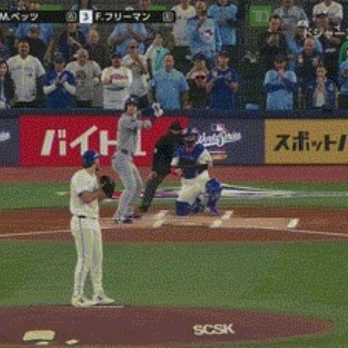 ◆ナ・リーグ優勝決定シリーズ(NLCS)※日程は日本時間■NLCSのアクティブロースター・二刀流(1人)17 大谷翔平 右 左打・投手(12人)7 ブレイク・スネル 左18 山本由伸 右22 クレイトン・カーショー 左31 タイラー・グラスノー 右80 エメット・シーハン 右11 佐々木朗希 右51 アレックス・ベシア 左43 アンソニー・バンダ 左49 ブレイク・トレイネン 右70 ジャスティン・ロブレスキー 左78 ベン・カスパリウス 右86 ジャック・ドライヤー 左・野手(13人)16 ウィル・スミス(右打 C)47 ベン・ロートベット(左打 C)9/45 フレディ・フリーマン(左打 1B)13 マックス・マンシー(左打 3B)50 ムーキー・ベッツ(右打 SS 2B OF)72 ミゲル・ロハス(右打 SS 3B 2B)12 アレックス・コール(右打 OF)37 テオスカー・ヘルナンデス(右打 OF)44 アンディ・パヘス(右打 OF)75 ジャスティン・ディーン(右打 OF)6 キム・ヘソン(左打 2B SS OF 3B)8 キケ・ヘルナンデス(右打 OF 3B SS 1B 2B)25 トミー・エドマン(両打 2B 3B SS OF)■NLCSの日程とスタメンvs ブリュワーズ(1,2,67戦は敵地、3,4,5戦はホーム)(10/13)第1戦(link)◯ LAD 2-1 MIL ✕1(指) 大谷翔平:2打数0安打2(遊) ベッツ3(右) Tヘルナンデス4(一) フリーマン5(捕) スミス6(二) エドマン7(三) マンシー8(左) Kヘルナンデス9(中) パヘス先発投手 スネル:8回1被安打10奪三振0失点(勝) 佐々木朗希:0.2回1被安打0奪三振1失点(H)(戦評)敵地でスタートした第1戦。先発スネルが8回無失点の支配的なマウンドで相手打線を封じる。フリーマンのソロで勝ち越すと9回にも押し出しで追加点。9回診守護神・佐々木を投入する。しかし四球から乱れ一打サヨナラの場面に。最後は二死からあとを受けたトレイネンが三振にしとめ、辛くも逃げ切り。↓はとても珍しいセンターフェン直のダブルプレー(中ゴロ併殺)
