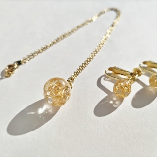 オーダー制作の続き... 3タイプのイヤリングトップサンプル品完成後お客様にデザインを選んでいただきました。ゴールドリーフsphereお目が高いです( ⓛ ω ⓛ *)デザインも決定したところで次は、ネックレストップの制作そして金具取付、仕上げ加工まで一気にいきます。道具類はほぼ前回と同様今回は、ピンセットが最重要アイテムモールドは12mmに狙いを定めますモールド内が8割程度になるまで繰り返し今回もこの子の出番ニャ~!型抜き剤で取り出します【バリ除去】金具取付の際にバリ部分が邪魔なので2種のルーターを使い分けそれぞれの表面を滑らかに加工していきますイヤリングトップ(8mm)ネックレストップ(12mm)これで、全パーツが揃いました(^_^)【金具取付、仕上げ加工】◇イヤリング◇こちらのバネ式イヤリングの土台に取り付けていきます土台にパーツをのせ、UVライトを当て接着◇仕上げ加工◇レジンコーティング液を全体に塗り塗りし艶出し加工、接着面の強化もこれでバッチリ◎前と後では、艶の出方が歴然ですよね(ΦωΦ)カツ━─━─━─━─━─━─━─━─━─━─◇ネックレス◇こちらのネックレスチェーンに取り付けていきますヒートンの取り付け完了◇仕上げ加工◇※ネックレスに取り付ける前にコーティングしっかり漬け込み⇒硬化、コーティング完了!艶が出てますね~(ΦωΦ)カツ丸カンで連結し完成です!!それでは完成品のお披露目・‥…━━━☆・‥…━━━☆・‥…━━━☆ゴールドリーフsphereイヤリング&ネックレス※自然光のもとで撮影しましたのでより実物に近いかと思いますこの場を借りまして今回はオーダーいただきありがとうございました*・゜゚・*:.。..。.:*・゜又、最後まで制作記をご覧くださりみなさん、ありがとうございます。TK、完成品を毎日見てはその美しさにうっとり見惚れております(*´ω`*)お客様に気に入っていただけるといいなぁ♫ちなみにこちらのsphere型アクセサリーはお花などを使いデザインを変えながら今後、『sideK』にて展開予定です。制作K撮影&ナビはわたくしTがお送りいたしました(ΦωΦ)人(ΦωΦ)あなたも今日からTKworldの世界へ~⇩⇩LINEスタンプ販売中 TKグッズBASE店はコチラから⇩⇩sideK&オリジナルTKグッズminne店はコチラから⇩⇩【TKworld~ねこのハンドメイドグッズ専門店~】テレワーク現場のストレスと5G時代に対応電磁波対策防御グッズ「電磁番AZ」(denjiban-1301)の紹介Kanemasa/BASE店はこちらから自社で製造/販売している商品を紹介しています。国内では取り上げられることの少ない深刻な電磁波被害。興味のある方は、是非ご覧くださいませ⇩⇩当ホームページへ