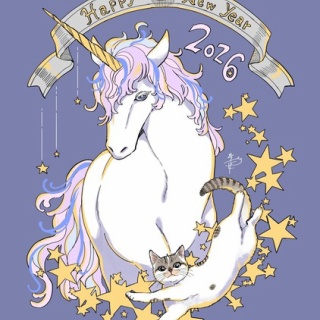 漫画家・イラストレーターの娘(星名カナト)が描いた今年の年賀状です。午年ということで、一角獣と我が家の愛猫である「まめのすけ」を描いています。絵で生活しているだけあって、なかなかのクオリティだと思っています(親の欲目?)。まめのすけといえば、現在5歳です。猫は通常、2歳ぐらいで大人になるのですが、まめのすけは成長が遅く、いつまで経っても体が小さく、全体の雰囲気がポヤポヤで仔猫のようでした。娘が拾った経緯からして、生まれたときから体が小さく、恐らくは親猫が「この子は育たない」と育児放棄をしたものを娘がたまたま見かけて拾ったのだろうと推測しています。当初は獣医さんから「心臓に欠陥があるから育たないだろう」と言われていたのを、娘が手塩にかけて世話をし、その後、同じ獣医さんから「心臓の欠陥は治っていますね。不思議なことです」と言わしめた過去があります。それ以降、少しずつ少しずつ体も心も成長し、5歳になった途端に体が大きくなってそれまでできなかったこともできるようになりました。娘にべったりだったのが、5歳の誕生日を迎えた後は自立したというのでしょうか、娘がいなくても、さほど寂しがることもなくなって、大人の猫らしい雰囲気を纏うようになりました。まめのすけは、5歳になってようやく大人の仲間入りをしたようなのです。そんなまめのすけ、我が家のアイドルです。生態もすっかり猫らしくなり、午前中は娘のベッドで寝ていて、夜になると俄然元気になって一晩中、家の中を走り回る毎日です。そんなまめのすけを含め、家族全員、何事もなく新年を迎えることができました。ありがたいことだと思っています。