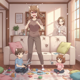 【悲報】7歳と3歳の子ども、ソファカバーをハサミで切ってしまう。その後の展開が…