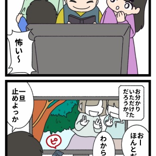 いっちが友達に心霊写真を集めたDVDを借りて来たんだけど上3人で見ることになってねいっち以外はどこに霊が写ってるかわからんくて一旦動画を止めてからここが目で〜って説明したらしいで、動画再開したんだけど…次の写真の紹介のために一旦画面が暗転した時いっちが指で心霊写真の顔をなぞったところが暗い画面に浮かび上がったらしくてwwwwwこれ私が毎日ちゃんとテレビ画面を拭いてたらよかったんだけど、サボってたもんだからホコリがついててねw指でなぞってホコリがとれて、画面暗転でホコリが取れた所がより鮮明な黒になって霊の顔が画面に残った感じになったらしい(笑)いや、ほんとごめん!めっちゃ怖かったらしく、にぃとしゃんはキレ散らかしていっちに当たってた(汗)