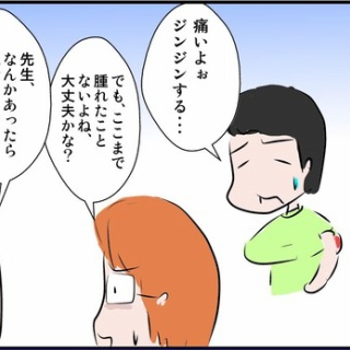 インフルエンザの予防接種ではれた腕を見てひとこと