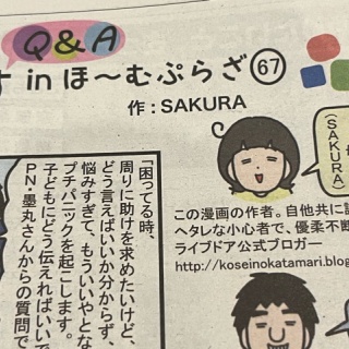 どうも、SAKURAです。当ブログを訪問してくださり、ありがとうございます。【登場人物紹介】母(SAKURA)、父(旦那)、長女(中3)、長男(小3)、次男(3歳)の5人家族。長女、あーさんの発達障害の話や、療育・・・子どもたち、5歳差育児のことや、私たち夫婦のこと・・・とにかく、日常の日々、すべてを描いています。★書籍発売中です★Amazonはこちら↓うちの子、個性の塊ですSAKURAすばる舎2020-07-22楽天はこちら↓ <コメント・メッセージについてのお願い>いつも、アメブロ・ツイッター・インスタにコメント、メッセージをありがとうございます。一つ一つありがたく読ませていただいています。(現在、ライブドアブログはコメント欄を閉じさせて頂いております。)コメントの返信とメッセージ返信は不定期になります。ツイッター、インスタに関しては、コメントに「いいね」だけしかできない時もあるかと思いますが、どうかご理解いただきたいと思います。【お知らせ】です!本日、ほーむぷらざ連載中の漫画、67話が掲載されています。ネットで読む方はこちら!↓ ほーむぷらざさんで連載中のこちらの漫画で、現在質問を受け付けています。選ばれた質問に、私が漫画で答えます。沖縄県外の方でも大丈夫ということなので、是非質問してくださ〜い!(ネタを提供してください…泣)質問はこちらからどうぞ↓↓↓ 読者登録よろしくお願いします!↓インスタはこちら↓sakura.koseiX(旧Twitter)はこちら↓