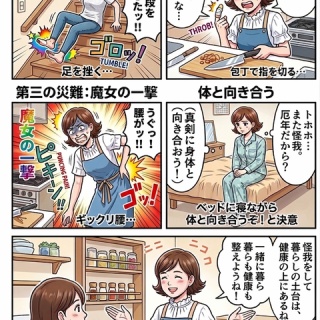 ⚠️Safariやgoogleの広告が気になる方は、livedoorのアプリからお読みくださいませ。↓ 【3/25 暮らしの大学にお申し込みの皆さまへ】ご質問回答のフォローアップURLは、4月14日午前中にメールにてお送りしております。まだご確認いただけていない場合は、迷惑メールフォルダに振り分けられていないか、あわせてご確認ください。また、受信設定などにより届かない場合もございます。万が一見当たらない場合は、お手数ですが事務局までご連絡いただけますと幸いです。片づけの向こう側事務局+++ 実は……人生で初めて「ぎっくり腰」を経験してしまいました。 先日包丁で指を切ってしまったばかりなのに、今度は腰とは……。 まさに「泣きっ面に蜂」状態で、自分でも思わず「トホホ」と苦笑いしてしまいます。 今はAIのアドバイスを参考にしながら、 *とにかく安静にすること * (急性のうちは)お風呂で温めすぎないこと を守って、静かに過ごしています。 今年は前厄ということもあり、立て続けに起こるハプニングに「そろそろ自分の体をメンテナンスしなさい」というメッセージを感じています。 今週末はしっかり休養に充てて、来週からの仕事に備えます! このぎっくり腰が完治したら、これからはもっと真剣に、自分の体と向き合って大切にしていこうと心に誓いました。Geminiに漫画にしてもらいした。笑 皆さまも、季節の変わり目ですので、どうぞお体ご自愛くださいね。<現在開催中のイベントについて>「3ヶ月見られる!石阪式基本メソッド 一生散らからない秘密 90分で人生が変わる!」▶視聴配信の詳細はこちら2026年2月14日~2026年5月15日↓お申込みはこちらから↓+++石阪京子のLINE公式アカウントを作成いたしました!・ブログのご紹介(週1回)・トークイベントのご案内(不定期)など、こういったお知らせと一緒に、LINEだけでのお話もお伝えします。以下をタップして、友達追加してくださいね♪ ↓ ↓ ↓ ↓+++毎日ブログの更新通知を受け取りたい方は、こちらから、アプリで受け取る設定ができます。 ↓ ↓ ↓ +++ 片づけの向こう側~石阪京子先生の片づけメソッドで人生を輝かせよう!~とても優しい管理人さん達がFacebookを運営して下さっています。+++Instagramでも片づけのためのアイデアや日々のご飯などを配信中! 動画もたくさんアップしていますので、こちらもぜひご参考にしてみてくださいね!+++LINEレッスンについてLINEレッスンは、トークイベントで思考改革、片づけの方法を学んでいただいた方のみが、ご受講いただけるシステムになっております。トークイベントにご参加くださり、LINEレッスンをご希望という方がいらっしゃいましたら、トークイベントお申し込み時の事務局メールまで、「LINEレッスン希望」との旨ご連絡くださいませ。事務局より、LINEレッスンの詳細をお送りさせていただきます。 今読まれています! 著書 見るだけでわかる! 図解 紙片づけ実家片づけ 「介護」「看取り」「相続」の不安が消える人生が変わる 紙片づけ!