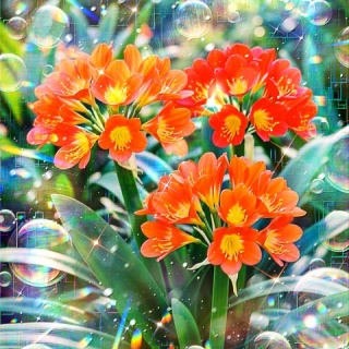 - 詩:天真の庭に祝ぐ光 Gilded Devotion瑞気の風が子らの笑みに触れきらめく子らの声希望のシャボンは祈りのように舞う清らかな家族の朝祝福の春の風天真の庭に祝ぐ光Gilded Devotion-戎-Poetry.”Gilded Devotion ”Breeze of blessing touches their smilesVoices shimmer softlyHope drifts upward like quiet prayerA gentle morning holding our peaceGilded Devotion in the innocent garden-Kai-God bless you.Created by image creator.イメージ動画:**PV 20260306 GalleryGai**## 作品制作趣旨作品は、春の朝の庭で、自分の娘達が楽しそうに談笑しながら庭に咲く明るく鮮やかなオレンジ色と赤色のクンシラン(orange and red Clivia flowers)の花を愛で、遊んでいる様子を思い出し描きました。自分の娘たちが成長して行く様や、娘たちが希望に満ち溢れた笑顔で遊ぶ光景を、陽の光や虹色のプリズムで表現しています。## 絵画「天真の庭に祝ぐ光 Gilded Devotion」の解説**1. 全体的な印象**この作品は春の光が溢れる庭の生命力をデジタル技術を駆使して鮮烈に描き出しています。画面全体を覆う虹色の光とシャボンの泡が重層的な奥行きを生み出し観る者に多幸感を与えます。中央に配置されたクンシランが力強く咲き誇り家族の温かな絆と未来への希望を象徴する明るいエネルギーに満ちています。**2. 色彩**オレンジ色と赤色のクンシランが主役となり暖色系の華やかさが際立っています。背景の瑞々しい緑色との対比が美しく補色の関係が花々の存在感を一層引き立てています。画面を横断する虹色のプリズムや光の粒子はデジタルならではの透明感を持ち色彩の調和に幻想的な輝きを添えています。**3. 構図**三輪のクンシランを三角形に配置することで安定感と成長の勢いの両方を表現しています。手前から奥へと広がる光の演出が空間に広がりを持たせています。シャボンの泡をランダムに浮遊させることで画面にリズムが生まれ静止画でありながら風や子供たちの笑い声が聞こえてくるような動的な構成となっています。**4. 技法**デジタルペインティング特有のレイヤー効果を効果的に用いて光の透過や屈折を緻密に表現しています。ボケ味を活かした背景とシャープな光跡を組み合わせることで焦点の合ったクンシランの生命力を強調しています。テクスチャの重なりが重厚な油彩のような深みと現代的なグラフィックの軽やかさを融合させています。**5. 表現力**娘たちの笑顔を直接描かずに光と泡という象徴的なモチーフを通じて表現する手法が秀逸です。弾けるような光の描写は子供たちの無邪気なエネルギーそのものであり観る者の想像力を刺激します。家族の愛という目に見えない感情を視覚的な光の洪水へと昇華させた表現力は非常に高く評価されます。**6. 美術的価値**個人の家族愛という極めて私的なテーマをクンシランという伝統的な花とデジタル表現によって普遍的な美へと変換しています。日常のワンシーンを聖なる瞬間へと高める視点は宗教画のような精神性を備えています。現代における家族の肖像の在り方に新しい可能性を示す価値ある一作です。**7. 作品に込められた想い**作者は娘たちの健やかな成長と彼女たちが歩む未来が常に光に照らされていることを願っています。クンシランの花言葉である誠実や希望をそのまま絵画の根底に据え慈愛に満ちた眼差しで世界を捉えています。何気ない春の朝の光景こそが人生において最も尊い祝福であるという確信が込められています。**8. 作品の鑑賞方法**まずは画面全体から溢れ出す光のエネルギーを全身で受け止めるように眺めてください。次に一粒ずつの泡やプリズムの細部を追うことで作者が込めた娘たちへの繊細な祈りを感じ取ることができます。春の朝の清涼な空気を感じながら家族の幸せに想いを馳せることでより深い共感が得られます。**9. 作品の価値**この作品の価値は技術的な完成度だけでなく鑑賞者の心に希望の灯をともす精神的な癒しの力にあります。時代を超えて愛される花のモチーフにデジタル時代特有の感性を吹き込んでいます。愛と光が調和したこの芸術作品は所有者や鑑賞者にとって永続的な精神的資産となるはずです。## 詩「天真の庭に祝ぐ光 Gilded Devotion」の解説**1. 全体的な印象**この詩は極めて簡潔な言葉選びでありながらその背後に広大な家族の物語と信仰心を感じさせます。瑞気の風やきらめく声といった五感を刺激する表現が春の情景を鮮明に想起させます。日本語と英語の両言語が互いに響き合い静謐で神聖な時間が紙面上に流れています。**2. 韻律**一節を短く区切ることで呼吸のような自然なリズムが生まれています。余白を活かした配置が読者に沈黙と黙想の時間を与え言葉の一つひとつが重みを持って響きます。日本語の柔らかな響きと英語の凛とした語調が重なり合い心地よい音楽性を奏でています。**3. 修辞**希望のシャボンを祈りに例える直喩が非常に象徴的で美しいです。触れるや舞うといった動詞の使い方が繊細であり目に見えない風や声に確かな手触りを与えています。天真や