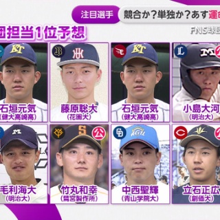 1: ぶーんと飛躍するななC⊂( ●▲●)⊃ 2025/10/23(木) 01:12:33.82 ID:iGFCV83p0 ■セ・リーグ 阪神 公表せず DeNA 公表せず 巨人 鷺宮製作所・竹丸和幸投手(23=城西大) 中日 公表せず 広島 創価大・立石正広内野手(4年=高川学園) ヤクルト 公表せず 2: ぶーんと飛躍するななC⊂( ●▲●)⊃ 2025/10/23(木) 01:12:57.40 ID:iGFCV83p0 ■パ・リーグ ソフトバンク 公表せず 日本ハム 公表せず オリックス 公表せず 楽天 公表せず 西武 明大・小島大河捕手(4年=東海大相模) ロッテ 公表せず (全文はリンク先) 3: ぶーんと飛躍するななC⊂( ●▲●)⊃ 2025/10/23(木) 01:13:20.04 ID:LWkC86Q40 予想じゃなくて草 https://nova.5ch.net/test/read.cgi/livegalileo/1761149553/
