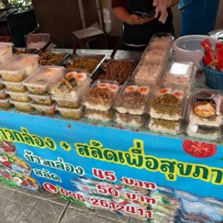 ホテル近くの屋台コーナーに。さすがに土曜日は客が少ない様子だ。45THBにてローカル飯の弁当が楽しめるのは嬉しいので再訪問。