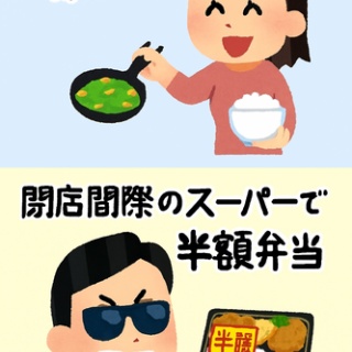 バカ「自炊で節約ぅ~!」 天才ワイ「閉店間際のスーパーで半額弁当ゲットぉ!!1食150円也ィ!」