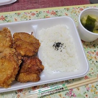 玉子スープ付き熱々からあげ弁当!~ マルふじ(神宮寺店)