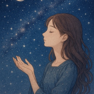 星が語らない夜もあります。 でも、空はそこにあって 手のひらには、祈りのかけらが残っています。 恋を待つことは、 ただ誰かを想うことではなく 自分の心に、そっと灯りをともすこと。 今夜も、静かに。 星に届くように、手のひらを空へ。 この場所に咲く言葉と絵の花は、すべてイーリスが紡ぐ魔法です。 c2025 FairyIris / ありがとうの家 あなたの心にそっと寄り添うための贈りもの— その輝きを守ってくださいね。