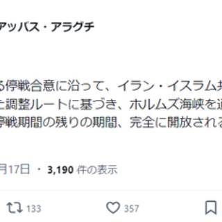 1:それでも動く名無し 2026/04/17(金) 21:55:10.55 ID:mFGRACVm0 https://twitter.com/araghchi/status/2045121573124759713