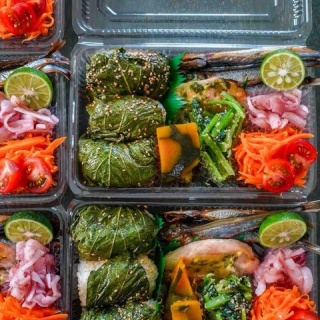トンネル工事の方の夜ご飯です。金曜日夜は土日休みなので、使い捨ての容器にしてます。・ししゃもの塩焼き・ササミのネギ味噌マヨ焼き・大根の梅おかか和え・南瓜の煮物・小松菜の胡麻和え・人参のラペ・エゴマの葉のおにぎりお野菜たっぷり!金曜日は冷蔵庫の中のお野菜使い切りたいのでたっぷり!でも逆にないと、メインばっかりになっちゃいます。蓋閉じちゃうから、すだちで重し。友人から教えてもらった、エゴマの葉のおにぎりのレシピです。エゴマの葉 60枚胡麻油 大4.5みりん 大3コチュジャン 大1.5ニンニク 小3一味唐辛子 小1〜醤油 150cc白胡麻 大6