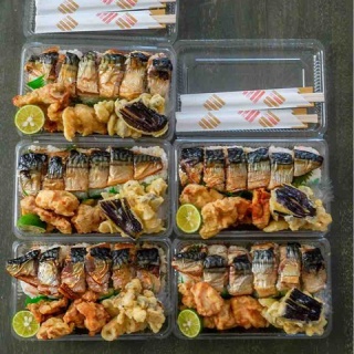 トンネル工事の方の夜ご飯です。金曜日夜は土日休みなので、使い捨て容器で。・鯖寿司・鶏天(柚子胡椒風味)鯖寿司のシャリは、お米炊くときに昆布入れて炊いて、お米一合に対して、お酢 24cc砂糖 18g塩 0.45g炊き上がったら↑の混ぜて、生姜の甘酢漬け、白胡麻を混ぜる。ラップで形を整えて、大葉のっけて焼いた鯖をのせて、形を整えて完成です。