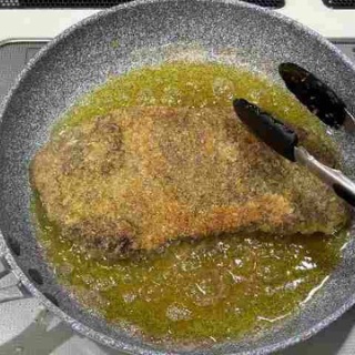 なんだかんだと月イチのペースで作るビーフカツまあ、いつも通り安い牛肉でつくるんだけど今日は少々趣向を変えてみるよテレビで見た有名店の手法なんだけど、包丁で全体に切り込みを入れるよ両面まんべんなく包丁を入れたら衣をつけるよ焼けば肉汁が出てしまうけど、揚げるぶんには衣があって肉汁が外には出ないので大丈夫なんだってオリーブオイルで揚げ焼きにするよ両面をカリッとさせたら油を切って盛り付けるんだけど長さ25センチあるので、デミグラスソースをかけると皿からこぼれそうなので別の器で安い米国産の牛肉でも簡単に噛みきれる仕上がりになったよ(*^-^*)