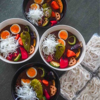 トンネル工事の方の夜ご飯です。和風カレーうどん。鰹だしを効かせてます。 たまにはうどんもいいかなと思って、各自、うどんチンしてもらおうっと。辛いのがダメな方がいるので、辛さは控えめに。カレーにはいつも生姜、ニンニクのすりおろしを。 皆さん、週一はカレー食べたいみたい。