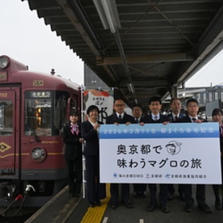 「マグロの中のマグロ」と呼び声高いクロマグロ(本マグロ)、実は「京都」がその小型クロマグロで、近畿圏でトップクラスの漁獲量を誇る。小型クロマグロは、あっさりした脂身でどの料理にも合うのが特徴の1つ。地元はもちろん、高級料理店などでも人気が高い。今年1月には「都まぐろ」という名称も付き、ブランド化もされている。その本場、京都府北部「奥京都」でクロマグロを堪能する、スペシャルな旅が体験できるツアーが、2日限定で実施される。今回、先行取材した。まず、西舞鶴駅から天橋立駅の間、人気の観光列車「丹後あかまつ号」に乗車する。その車内で提供されるマグロ料理は、舞鶴市内で人気の海鮮料理店「新鮮処魚里」が手がける。刺身や丼、生春巻や串かつなども。まさにクロマグロづくしの料理の数々がそろう。加えて、地元水産会社によるマグロの解体を間近で見られるショーも。クロマグロについての解説付きで、よりクロマグロのおいしさが実感できる。「丹後あかまつ号」では、天橋立の白砂青松がテーマの木目調の車内から、日本遺産の由良川橋梁や奈具海岸など“絶景”が楽しめる。それぞれの絶景スポットで徐行や停車することもあり、じっくり写真が撮れるのもいい。さらに、お酒のラインナップも豪華。丹後産山田錦100%使用の「香田」など、宮津市のハクレイ酒造が手がける日本酒は、いずれもマグロにとても相性がいい。ほろ酔い気分で、列車の旅とともに味わえる。ソフトドリンクでは、天橋立ワイナリーのぶどうジュースなどもある。2026年2月21日(土)・22日(日)の2日間限定で、各日3便ずつ。旅行代金は1人1万円(大人・子ども同額)で、各便15名限定。各日3日前まで締め切りで、先着順となっている。奥京都で味わうマグロの旅(海の京都観光圏)https://kyoto-magurotrip.com/(Written by A. Shikama)【Nicheee!編集部のイチオシ】・日本にここだけの「ローソン」が高知に! 巨大な「しんじょう君」の謎と店内も賑やか・高知名物グルメ「鍋焼きラーメン」四国なのにうどんじゃない理由と“行列できる”その味いかに・【高知】「宗田節」とソフトクリームが異色コラボ、道の駅限定その味いかに・ご当地スーパーでローカルなお土産探し! 【京都・市内編】