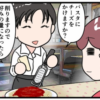 店員さんがパスタにチーズをかけてくれるサービスがありまして