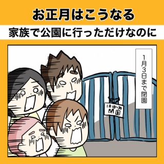 子どもたちも動きたいかな〜と公園に行く提案をしたちょこだけど・・・お正月皆さんはどう過ごしましたか?なんか・・・ちょこは毎年お正月は出かけるとこんな感じになってしまいます。そして次の年には忘れてまた繰り返すっていう。でも今回はカフェに行く前に電話したのはナイスでした!!去年の私ならそのままカフェまで行って落ち込んでましたね😇成長してる〜♪でも子どもたちに申し訳なかった・・・あと運転してくれたマーさんにも・・・この漫画を描くことで来年は覚えているはず!!明日は「可愛すぎてごめん」の話を投稿するよ♪次のお話はこちら↓ おすすめのお話はこちら↓