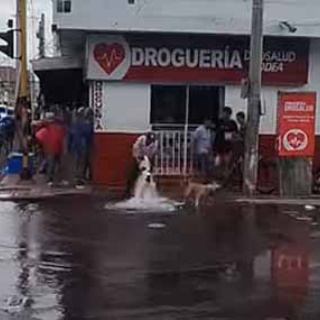 【海外の日常】 水道管が破裂して路上から水が噴き出していた → 犬飼いはこうします…