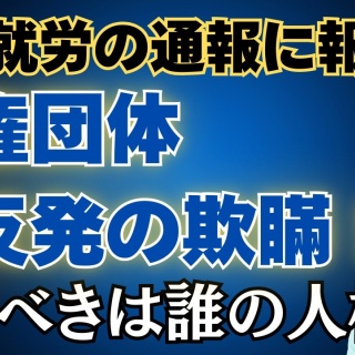 <YouTubeコメ>◆通報制度の懸賞も税金なんだからそもそも入れるなって話なんだよ。◆「不法」の時点で犯罪◆だったら入れなきゃいいのにね!!!!!!!◆不法は不法なんだから差別でも何でも無い◆日本にある人権団体なんだから、日本人の人権を守って日本人差別になるような制度に反対をしてもらいたいものですな 戦後反日人権団体は日本にいらんとです◆"不法”なんだから、通報は 当たり前。嫌なら、合法で就労すればいい。