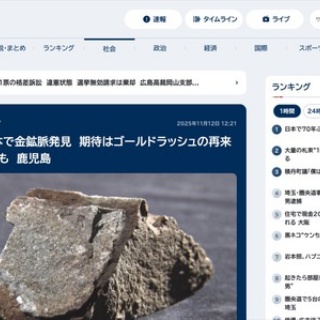 【鹿児島】70年ぶり、日本で金鉱脈発見
