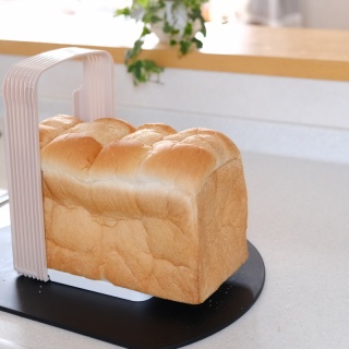 大好きな業務スーパーの 「天然酵母食パン」。 フワフワで、ほんの甘くて大好きなんだけど… 自分でカットしないといけなくて、斜めになったり、厚みがバラバラになったり、どうしてもうまく切るのが難しい…😅 買ったモノ そこで見つけたモノ! 「食パンカットガイド」! JAN:4550480744667 価格:330円(税込) こちらはダイソーで見つけました。 材質:ABS樹脂 耐冷/耐熱温度:-40℃/90℃ ベージュ×ホワイトの色味が可愛い😊 ガイドを開いて 食パンをセット。 あとはガイドに沿って切るだけで、 ※刃渡り21cm以上のパン切包丁に対応。 めちゃキレイに切れます✨ 刃を入れる場所は4か所あって、 厚さは ・8枚用(15mm) ・6枚用(20mm) ・5枚用(24mm) ・4枚用(30mm) の4段階。 これは8枚切り(15mm)と4枚切り(30mm)。 好きな厚みで切れるのがめちゃ良いです✨ 収納も◎ 畳むとコンパクトにしまえるのも◎。 まとめ カットのたびにストレスだった食パン問題💦 目盛りに合わせて包丁を入れるだけで、めちゃ上手に失敗なく切れて、ストレスがなくなりました!😊 ↓おぉ!ズートピアの新商品も✨ ブログ村ハッシュタグ#ダイソーおすすめ ブログ村ハッシュタグ#ダイソー購入品 ブログ村ハッシュタグ#100均購入品 ▼みなさんの多彩なブログはこちらから▼ブログ村 片付け・収納(個人)ブログ村 北欧インテリアブログ村 シンプルライフ▽記事の更新通知をアプリで受け取る▽最後までお読みいただきありがとうございました。