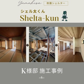 【シェル太くん工事 BeforeAfter】◆愛知県名古屋市 K様邸◆和室2室に6帖用のシェル太くんを施工◆Before2室の和室に隣接するダイニングと縁側◆鉄骨組立シェル太くんの工事に合わせてダイニングキッチンもリフォームしました!◆After和室・ダイニング・縁側を一体化し広々としたLDKが完成しました!【工事の流れ】床・天井を解体↓柱の内側に鉄骨を組立て↓柱まわりの基礎工事↓床・天井の内装仕上げ※ご要望に応じて壁・建具・窓・収納のリフォームも可能です♪---------------地震への不安をお持ちの方耐震対策をご検討中の方へまずはお気軽にお問合せくださいTEL:0120-36-1374---------------