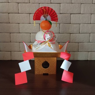 プラスチック包装の鏡餅を飾った。