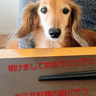 殿福家のお正月、朝はユックリです。 そして朝はお雑煮から。 大晦日はお酒も飲みますから、お腹に優しいお雑煮はぴったりなのです。 優しい姫ママは、U^ェ^Uにもお雑煮を用意してくれました。 新年を迎えても、ウマウマは良い仔にしかあげません。 こちらがお人様用。 牛蒡と鶏肉のお出汁が決め手であります😋 夕飯です。 今度はお節料理が登場。 これに姫ママの手料理が加わります🎵 ワンコお節(きんとん&八幡巻)です。 もちろん全て姫ママのお手製です。 これは美味しいでしょう😀 瞬殺ですね🤔 こちらお人様用のお節料理。 今年はジャパネットにしました。 歳のせいか、市販のお節料理は味が濃すぎる気がしますねぇ💦 コチラは姫ママ特製のお節料理。 八幡巻と鰤の照り焼き。 伊達巻も手作りです☺️ 元旦からちょっと食べ過ぎました😅 でも、いちばん食べたのは、コチラ。