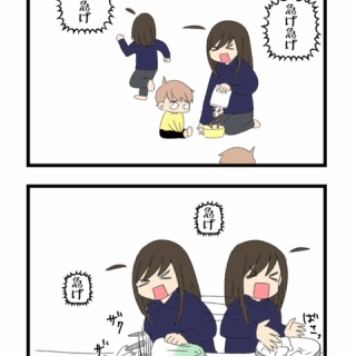 あわあわ急いで描いたら効果音とか書き忘れた(´;ω;`)双子の食欲が凄くて凄くて(´;ω;`)帰宅後はすぐおやつ!!本当に良くないんだけど、おやつ!!じゃないと大惨事!!※ずっと泣いてるでも、おやつも秒でなくなるから晩御飯はマッハで作ってるこの日は鍋にしてしまって結構時間かかっちゃっていつの間にかおやつラーメン開けてた、、、しかもちゃんとお皿にあけてるっていう、、、いい子なんだか、、、これだけおやつ食べても晩御飯も大人並にペロリと食べちゃうそれを見たうちの母のひとこと「前世ではきっと食べれなかったのね」本当にそう思うくらいよく食べる逆に三女が全然食べない